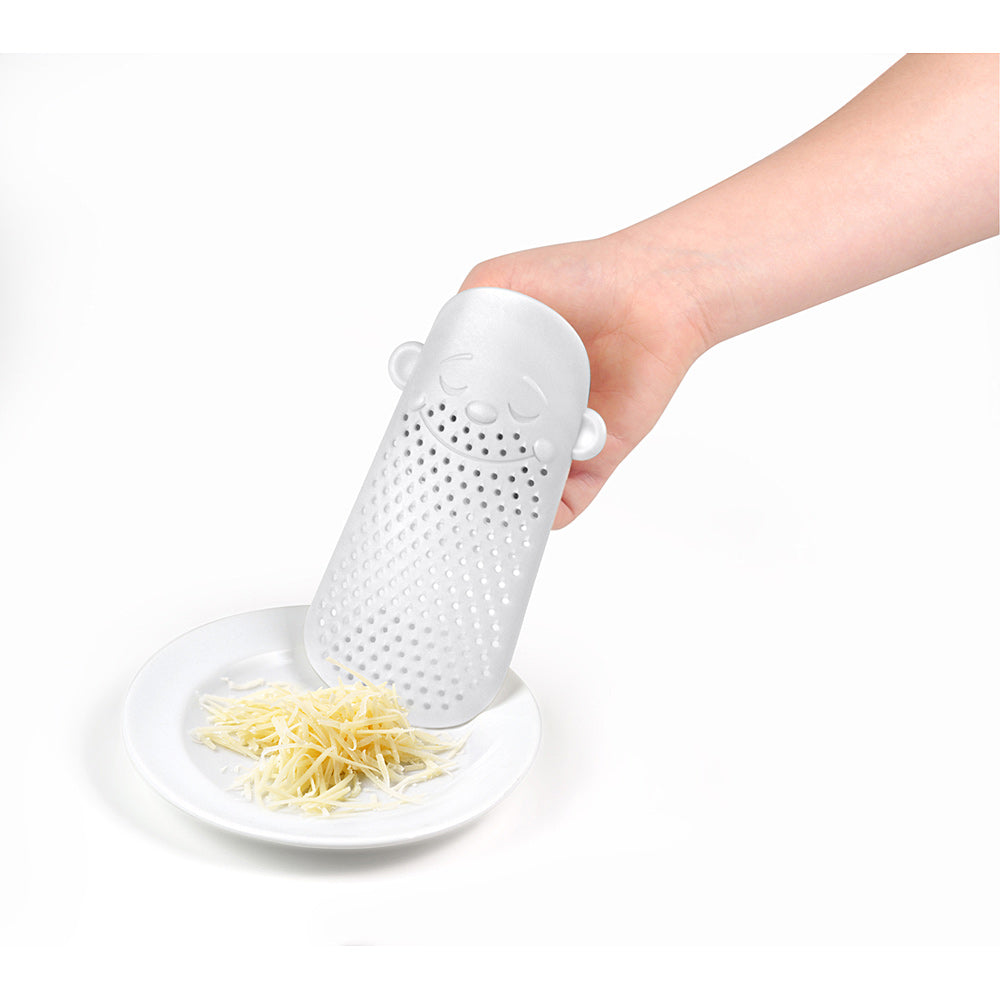 Zufriedene Käsereibe für entspannte Spagetti-Esser.