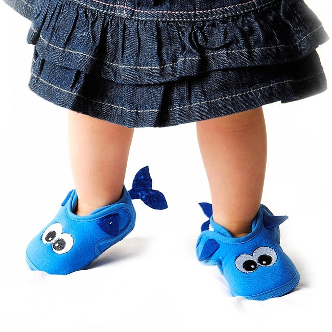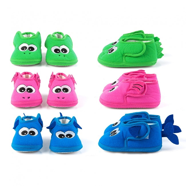 Schicke Monster-Hausschuhe für Babys und Kleinkinder, mit praktischem Klettverschluss uns Antirutschsohle.