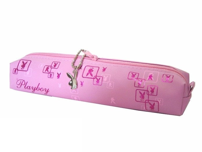 Schicke Federtasche von Playboy als Schlampermäppchen mit Reißverschluss, inklusive silberfarbenem Bunny-Anhänger mit Strassstein. Dieses Federmäppchen eignet sich bestens für Schule und Studium und lässt sich platzsparend in der Tasche verstauen.