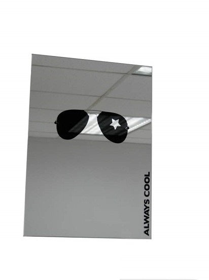 Spiegel mit coolem Sonnebrillen-Aufdruck. Mit dieser Fliegerbrille sieht man grundsätzlich Cool aus. Der hektische Alltag und gestresste Mitmenschen sind vergessen, wenn man in diesen Spiegel schaut.