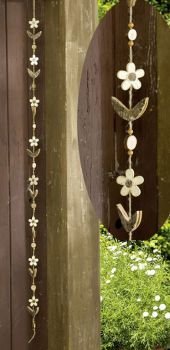 Blumengirlande NaturHolzblüten an Juteschnur mit Blättern aus Birkenrinde und kleinen Holzscheiben als Deko.Farbe: braunMaterial: HolzGesamtlänge ca. 1,40 Meter