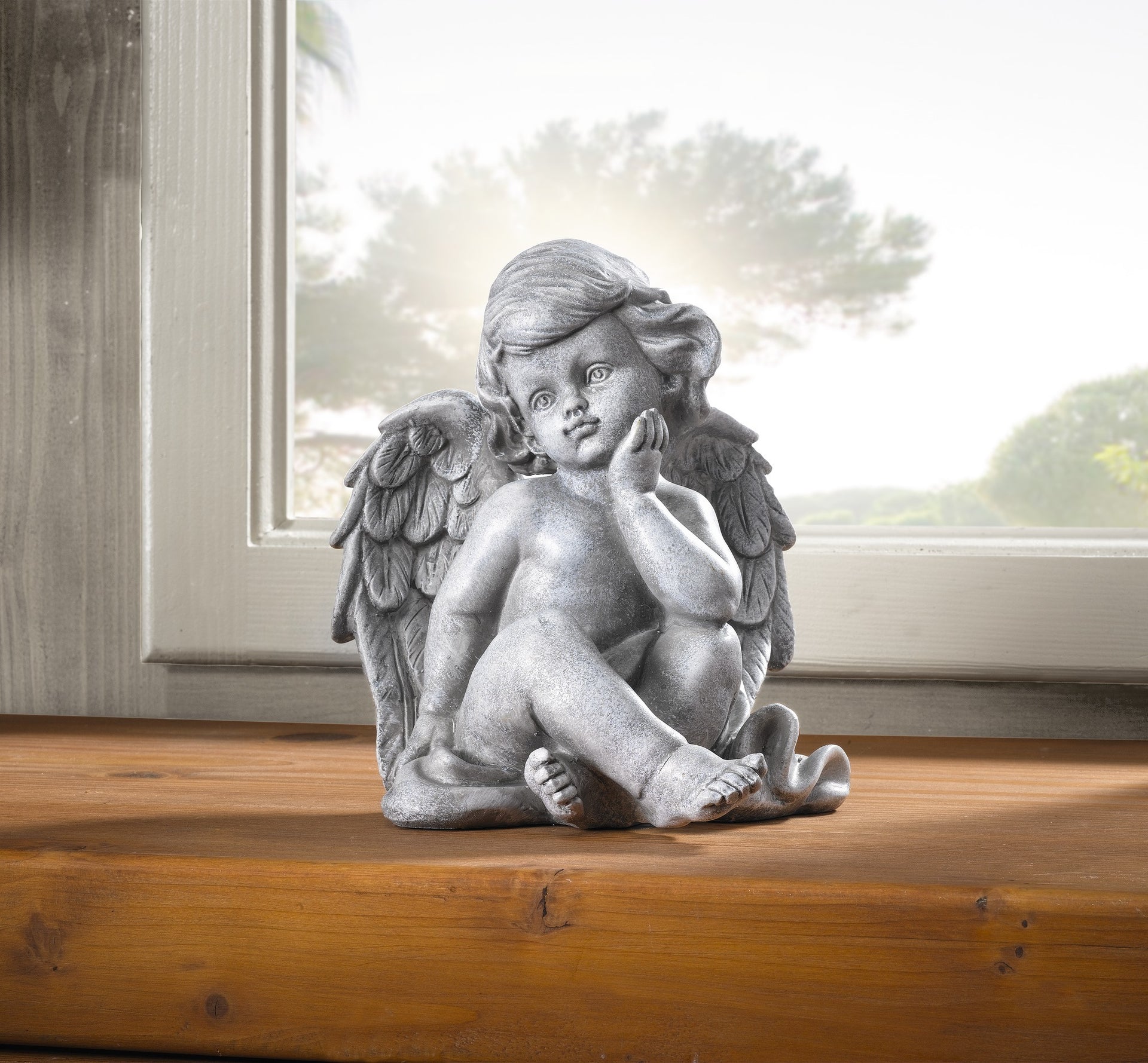 Deko-Engel SehnsuchtPolystein in grau schattierter Natursteinoptik, detailliert gearbeitetHöhe: ca. 15 cm