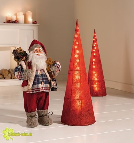 Textil-Nikolaus mit Kunststoffkörper mit mehreren unterschiedlichen Textilien in charmantem Landhausstil, harmonisch abgestimmte Farbtöne von weihnachtlichem Rot, kontrastreichem Blau und winterlichem Grau und Weiß, aufwändig verarbeitet mit liebevollen Details