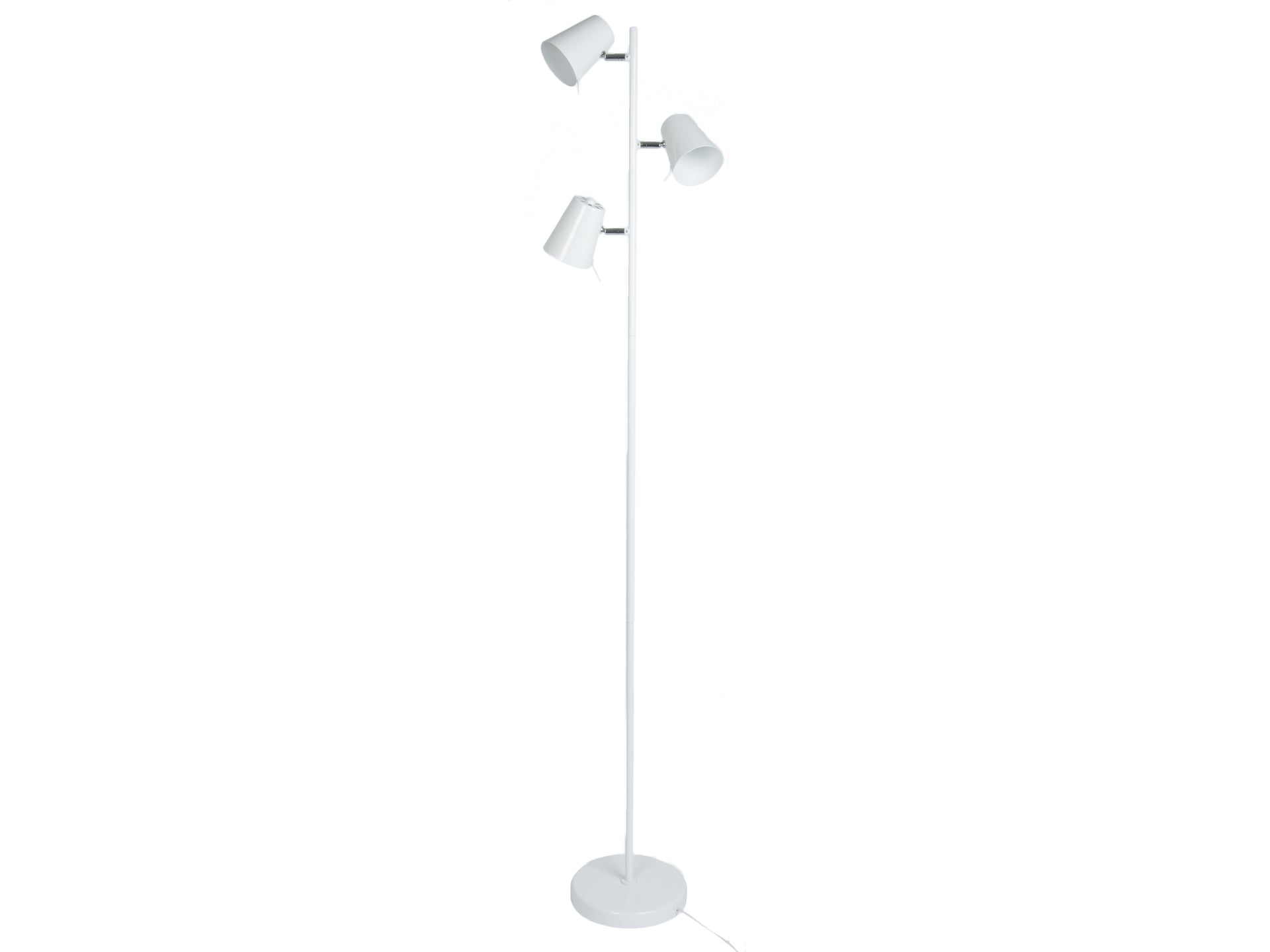 Klassische Stehlampe in schlichtem Design, die sich sehr gut in moderne Einrichtungen einpasst. Die Lampe verfügt über drei bewegliche Lampenschirme. Die Lieferung erfolgt ohne Leuchtmittel (Fassung 2x E14, max. 28W oder Energiesparbirne 2x E14, 9W).