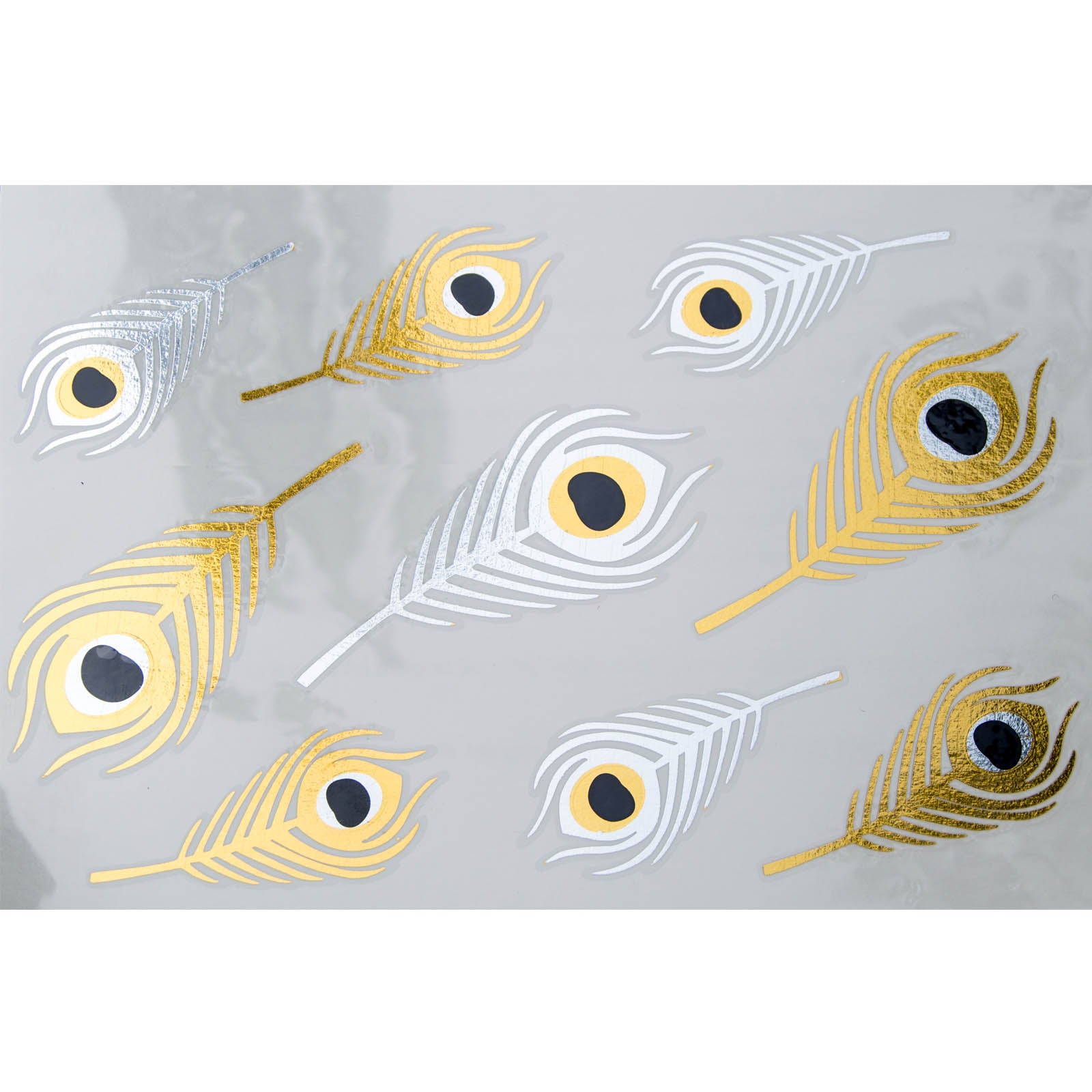 Flash Tattoo Pfauenfeder gold/silber 9-teilig