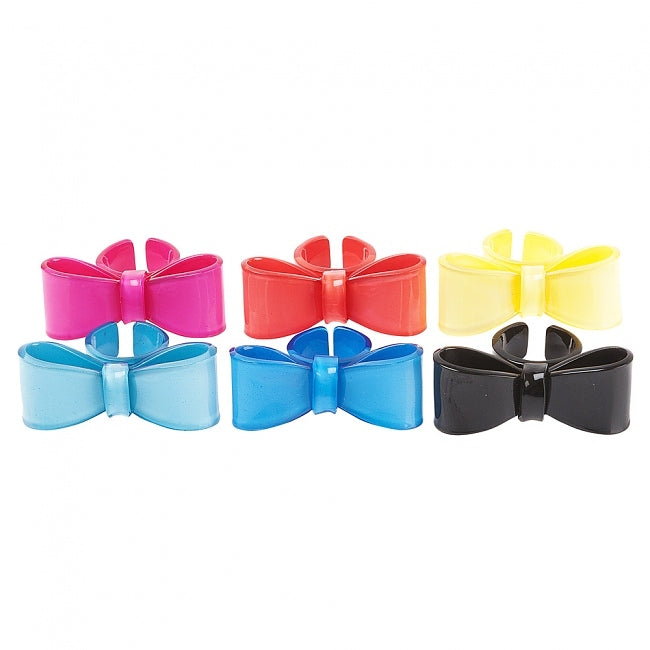 Witziger Fingerring als bunte SchleifeMaterial: AcrylEinheitsgröße verstellbarMaße Schleife: ca. 4 cm